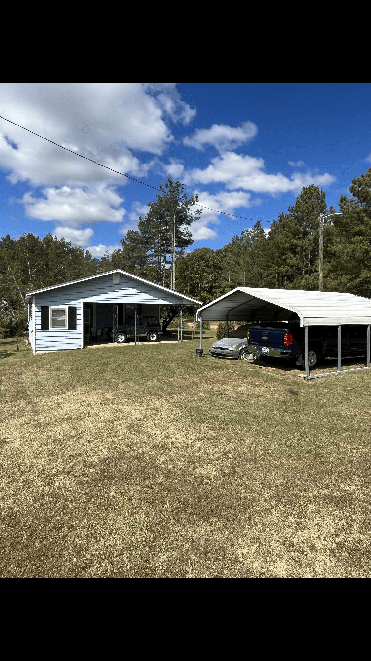 There is an older home built in 1964 with ±900 sq. ft of living area, 2BR, 1 Bath, Living Room, Kitchen, Utility Room with washer/dryer hook-ups with a single carport and an open front porch. There is also a portable metal 2 car garage, a storm shelter, an old wood-frame garage and a small barn suitable for equipment storage. There are also two much older houses that are not in livable condition. Power and community water are available.